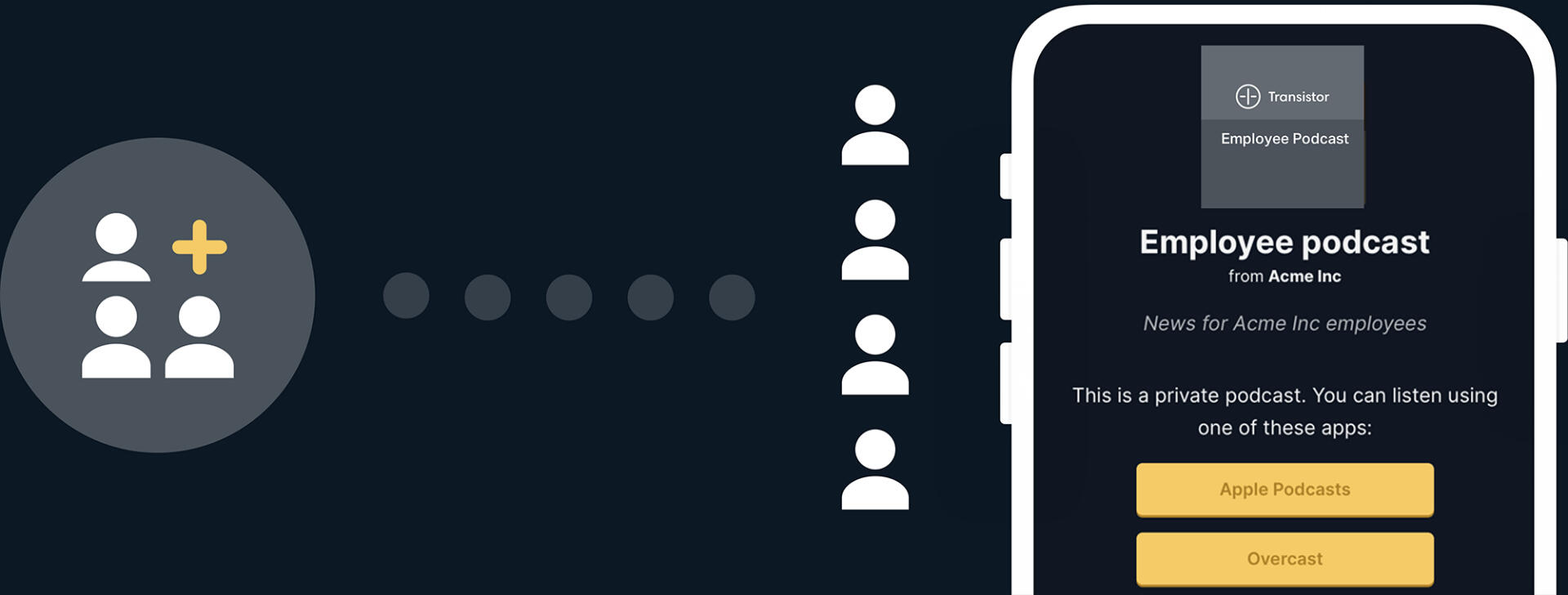 Give your team, or members, protected access to a private podcast feed they can listen to in their favorite podcast app.
